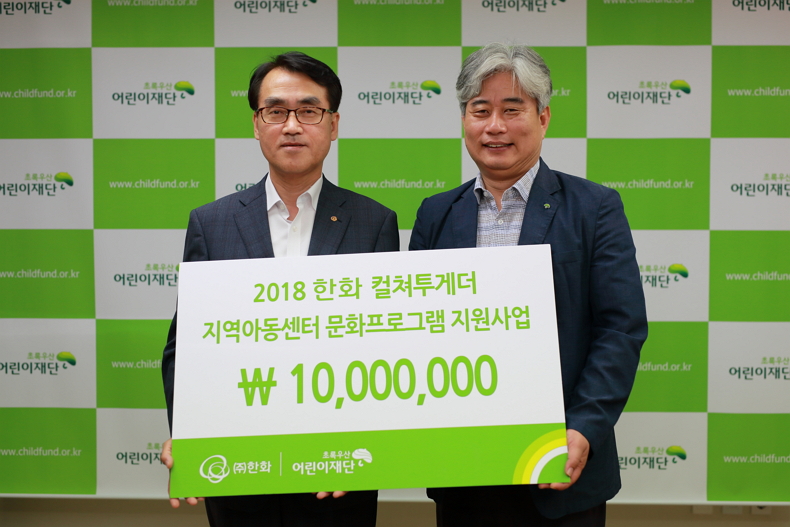 (주)한화(대표이사 김연철)는 5월 17일 초록우산 어린이재단(회장 이제훈)을 방문하여 천안지역 아동들의 기술∙문화체험 프로그램을 후원하는‘한화 컬쳐투게더’협약식을 진행했다.