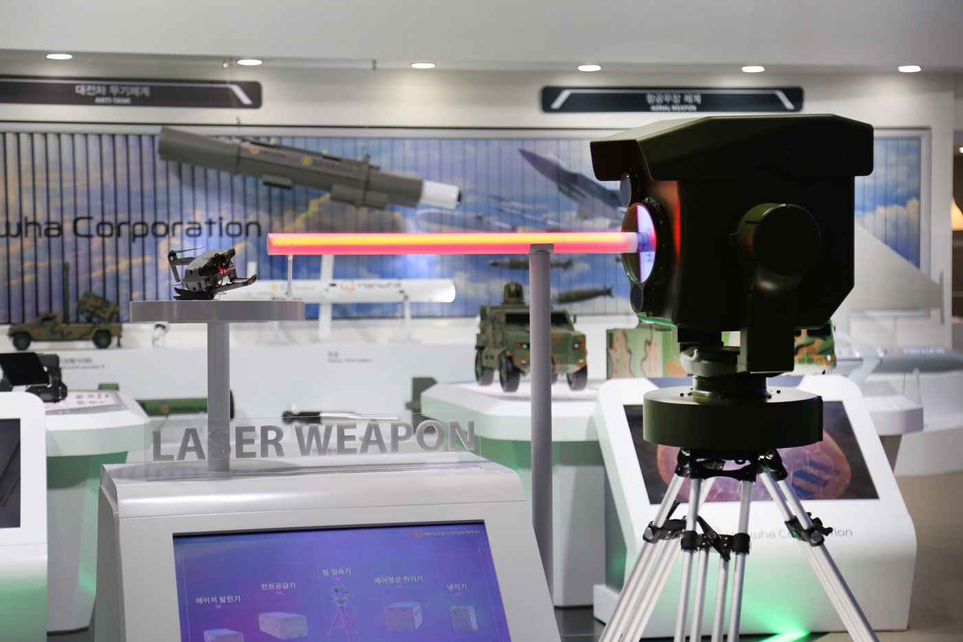 드론과 같은 소형 항공기의 위협에 대응하기 위한 솔루션으로 ‘소형레이저무기체계(㈜한화)’를 선보인다. 한국형 스타워즈 사업으로 불리는 소형레이저무기는 고에너지 레이저로 소형 표적을 정밀하게 타격할 수 있다. 또한, 소형‧경량화를 통해 SUV부터 장갑차까지 다양한 플랫폼에 탑재가 가능한 저비용, 고효율 대공 무기체계다.