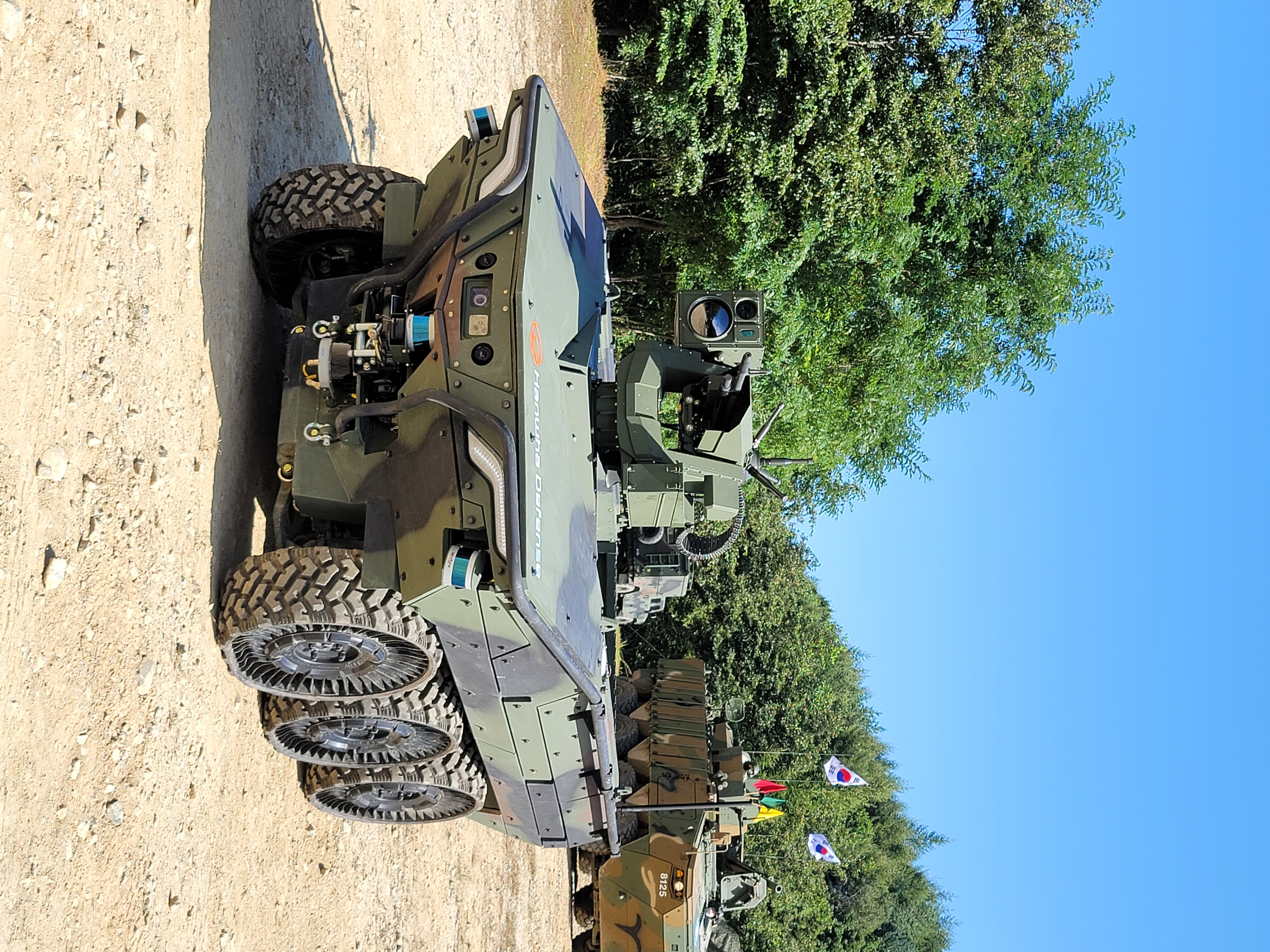 사람이 탑승하지 않아도 AI 기반 자율주행 기술과 원격 조종을 통해 전장에서 다양한 임무를 수행할 수 있는 ‘다목적무인차량(한화디펜스)’도 전시된다. 지능형 무인차량은 병사 대신 물자‧탄약‧부상자를 수송하고, 화력 지원도 가능해 군의 전투 효율을 한 단계 업그레이드 시켜줄 무기체계로 기대를 모으고 있다. 한화디펜스는 지난 7월 수출을 목표로 기존보다 적재 중량과 항속 거리 등을 강화한 6륜 구동 무인차량을 새로 개발 완료했다.