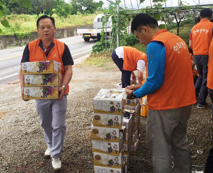 ㈜한화(대표이사 박재홍)는 지난 26일, 충남 천안시 서북구 입장면을 찾아 농가 포도 수확을 돕고, 수확한 포도를 농가로부터 직구매하여 중구 및 서대문구 지역 내 어르신들에게 기부하는 도농연계 사회공헌활동을 펼쳤다.