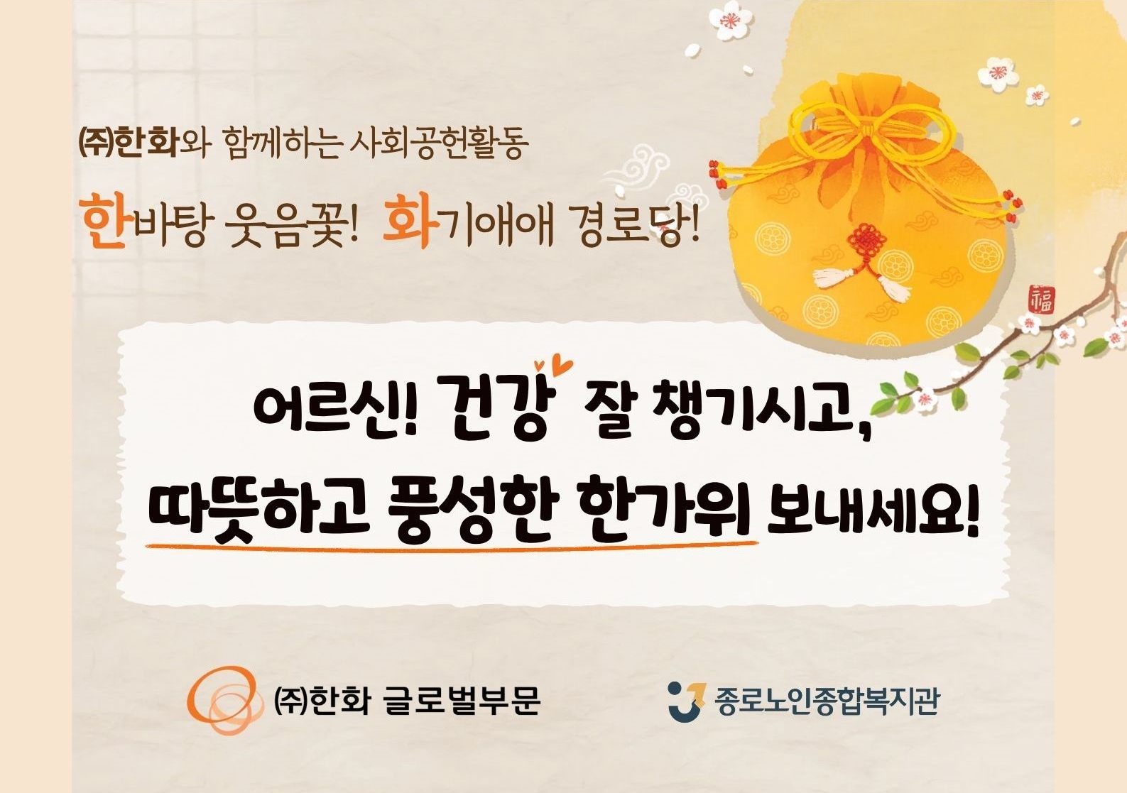 ㈜한화 글로벌부문 임직원 봉사단이 지난 23일 서울 종로구에 위치한 경로당을 방문해 ‘㈜한화와 함께하는 추석맞이 선물세트 전달’ 봉사활동을 진행했다.