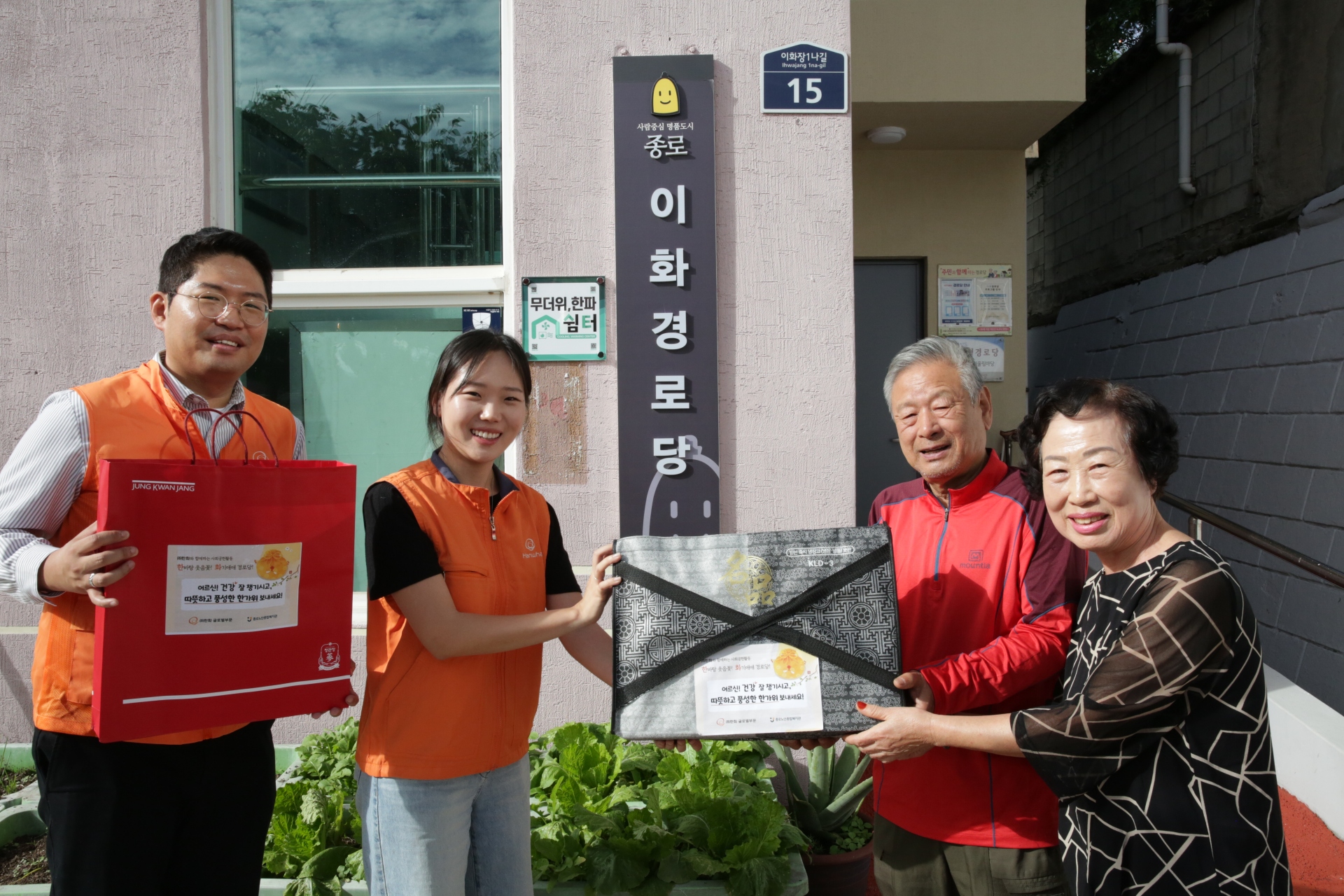 이날 봉사단은 직접 종로노인종합복지관에 모여 홍삼, 유과, 과일 등을 정성껏 포장해 선물세트를 준비했으며, 이렇게 준비한 선물세트와 화재안전키트를 종로구 내 경로당 4곳에 직접 전달했다.