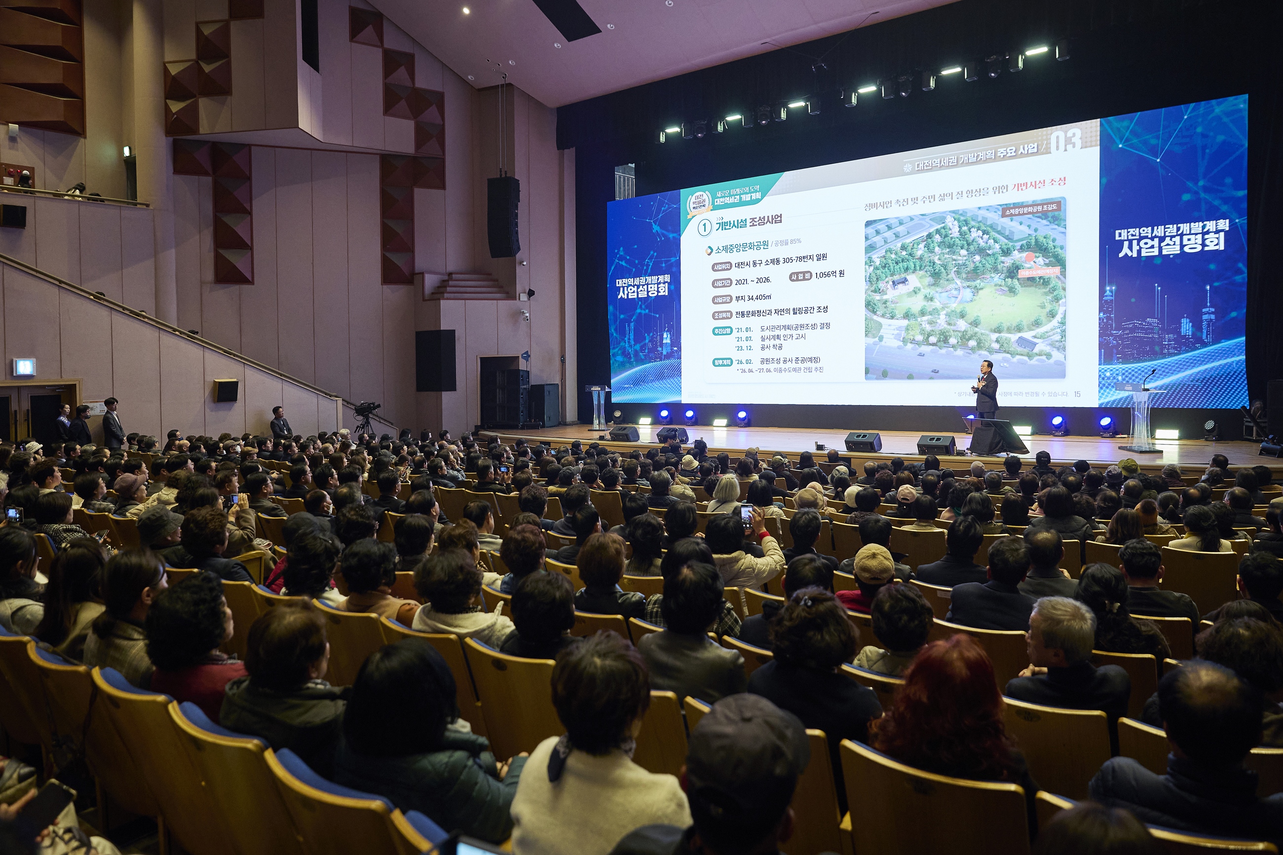 대전역세권 개발사업의 추진 현황과 향후 계획을 시민들과 공유하기 위해 마련된 이번 설명회는 이장우 대전시장의 시정 브리핑, 대전역세권 복합 2-1구역 사업설명 영상 상영, 현장 질의응답 등 소통에 주안점을 두고 진행됐다.