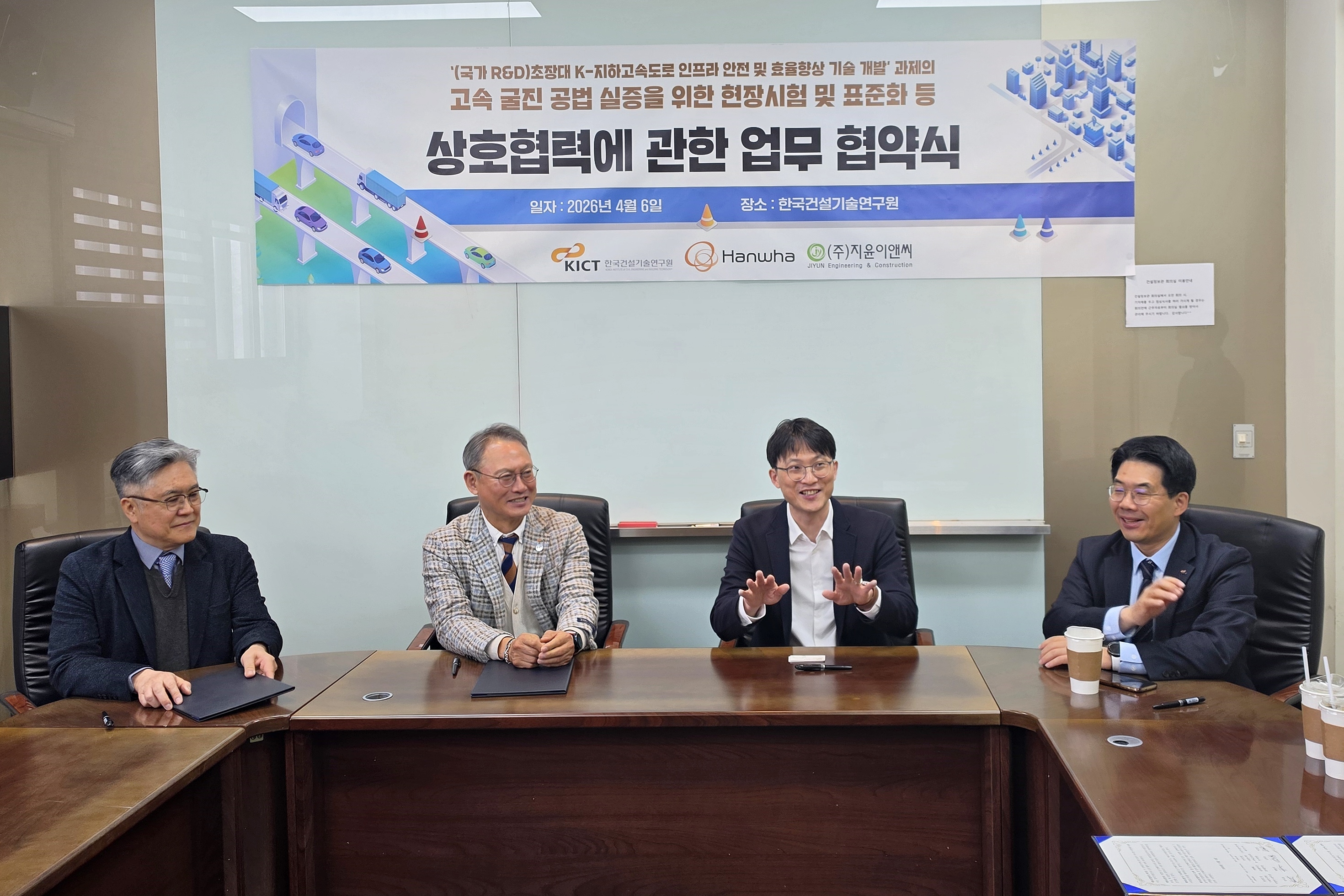 ㈜한화 글로벌부문, 건설연∙㈜지윤이앤씨와 K-지하고속도로 고속굴진공법 실증 위한 MOU 체결