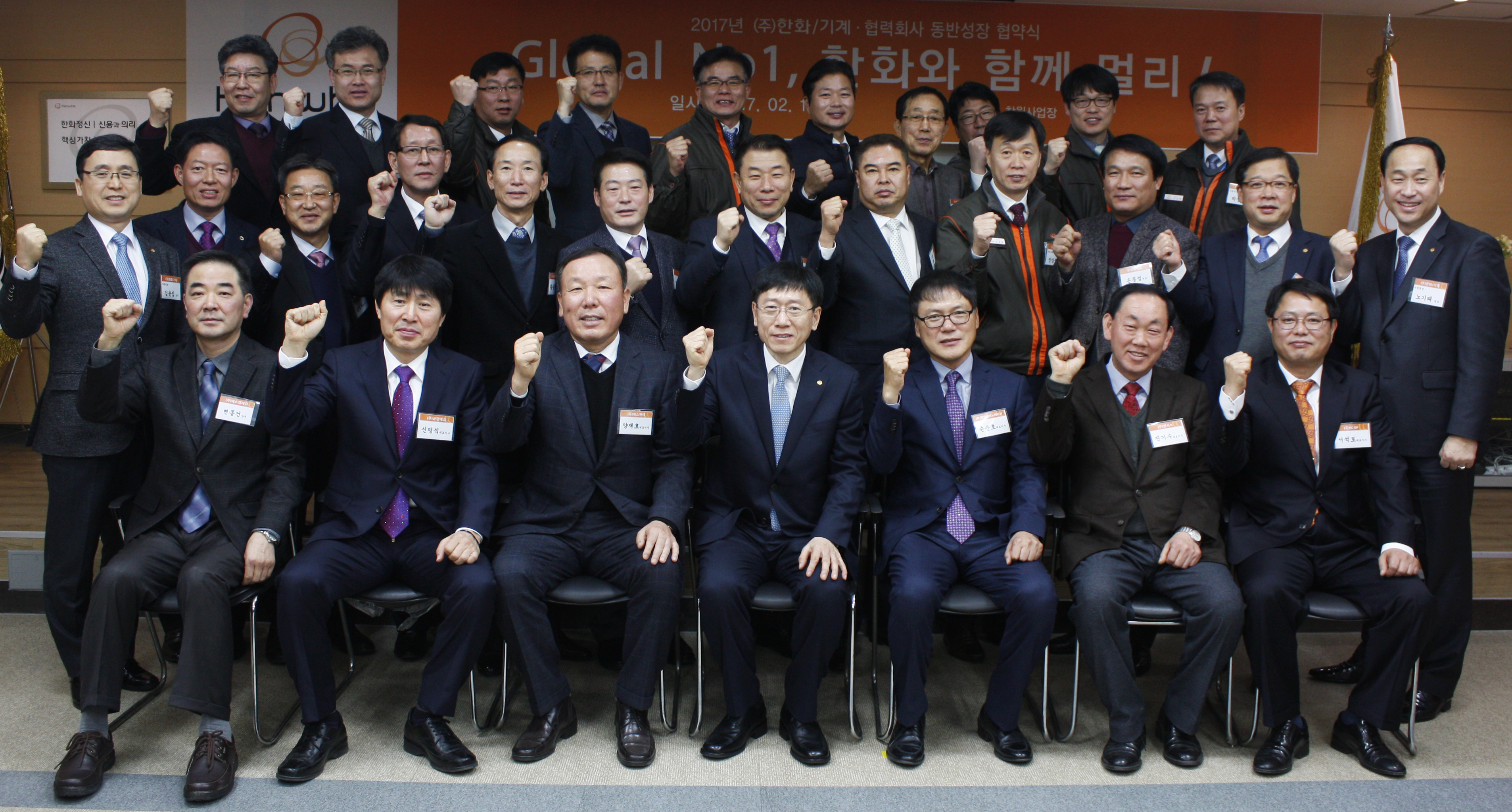 ㈜한화(대표이사 김연철)는 2월 10일 창원사업장에서‘2017 동반성장협약식’을 개최했다. 협약식에는 ㈜한화 김연철 대표이사를 비롯해 19개의 우수 협력사 대표가 참석했다.