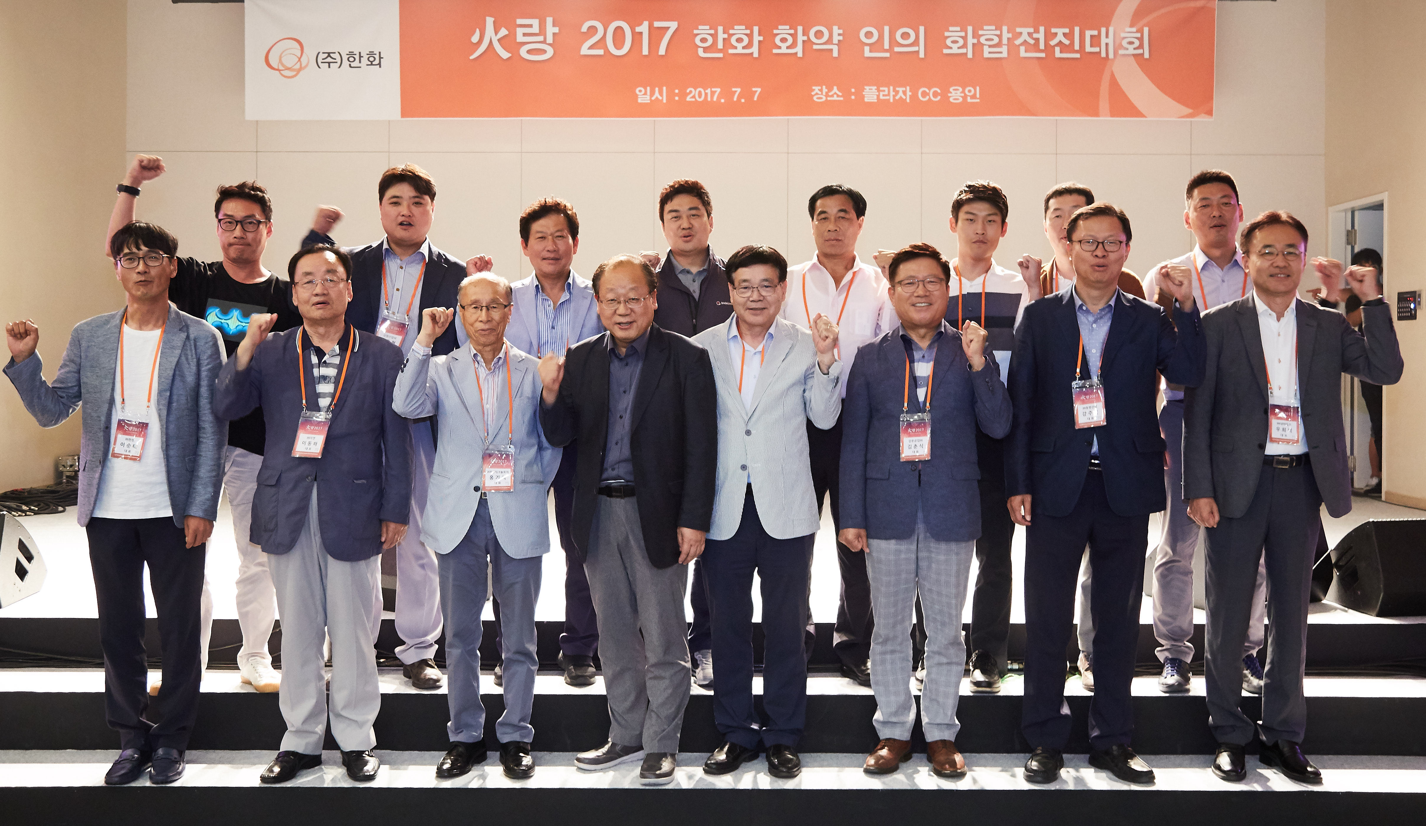 ㈜한화(대표이사 최양수) 화약부문은 7월 7일~8일 한화리조트 용인 베잔송에서 관리직 임직원, 협력사 대표 등 약 240여명이 참석한 가운데 화합 전진대회‘화(火)랑 2017’을 진행했다.